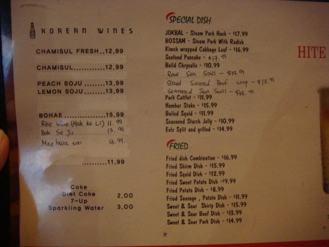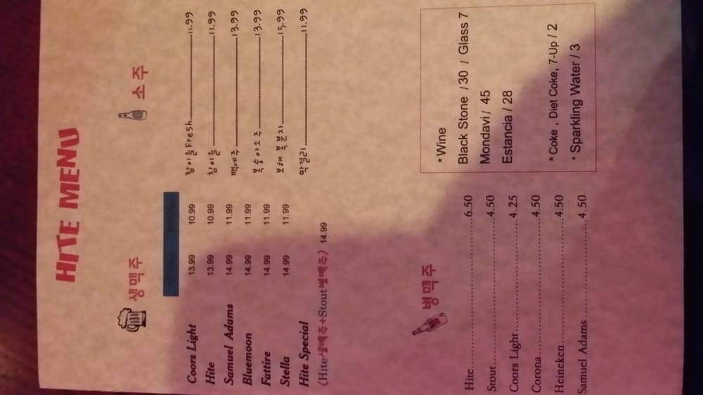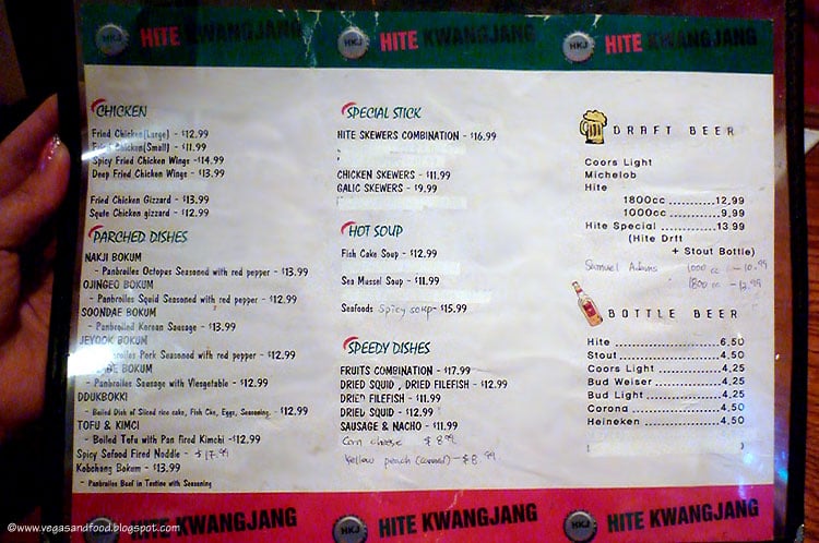 Hite Kwang-Jang Menu